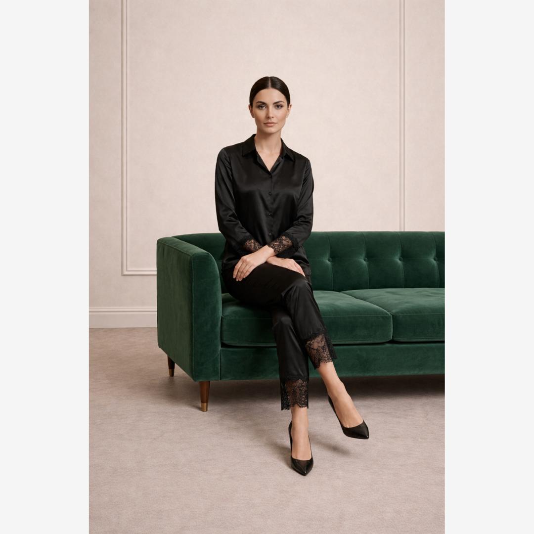Experience the perfect blend of elegance, comfort, and timeless style with our Black Classic Elegance exclusively crafted by Silks Studio. Designed for the modern woman who values both sophistication and relaxation, this premium sleepwear set transforms your nightly routine into a luxurious experience.