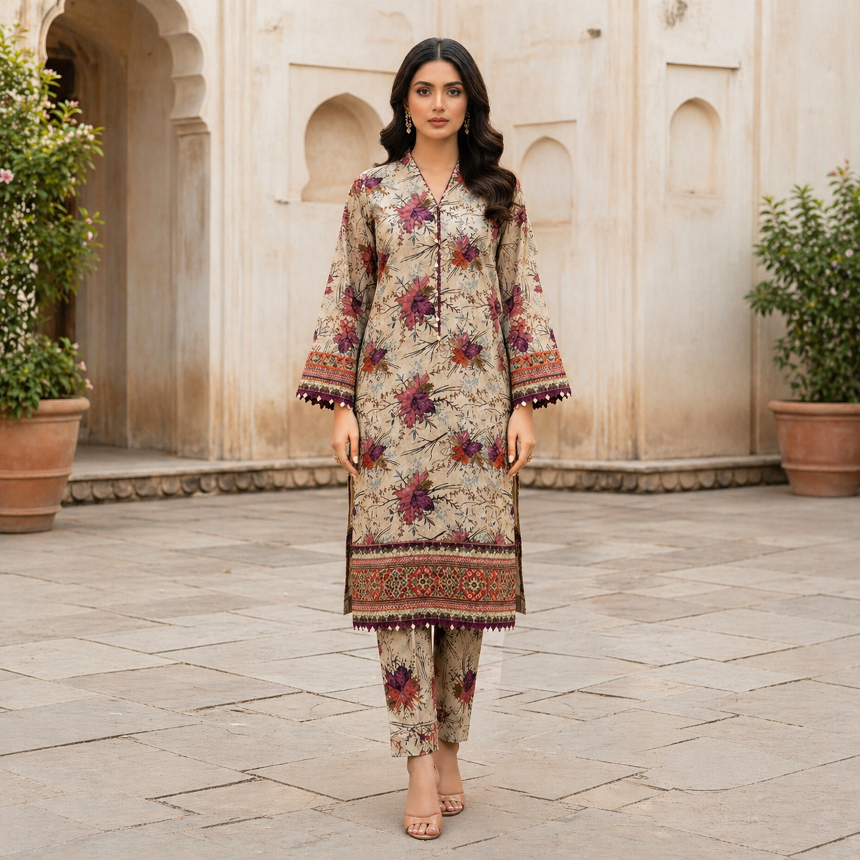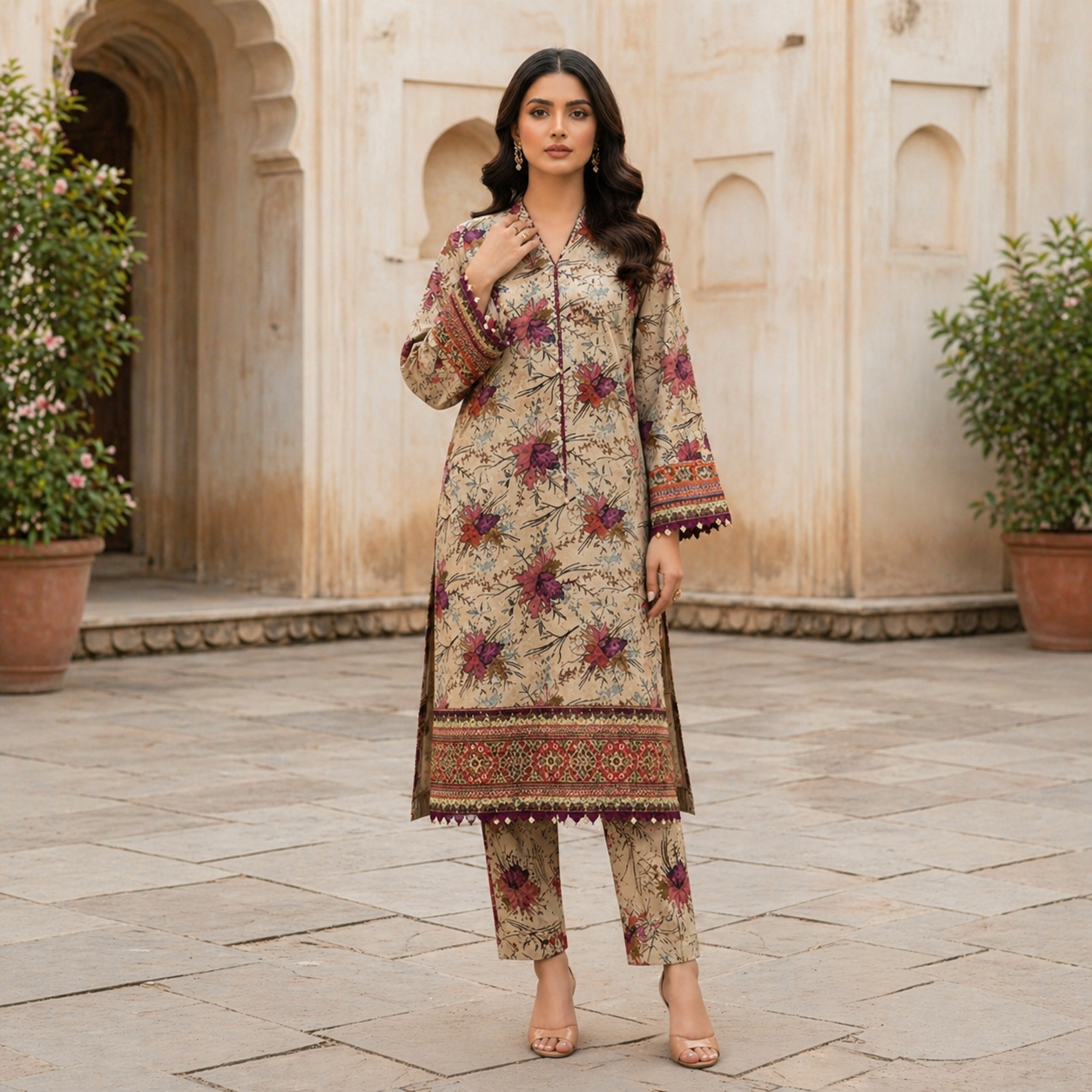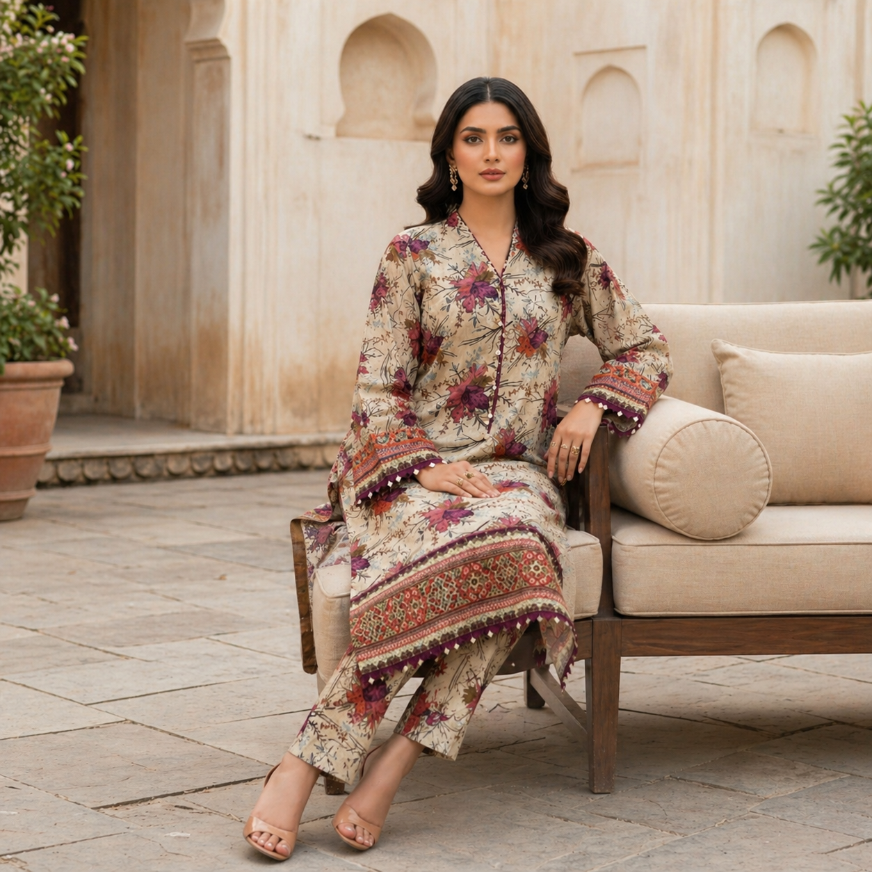 One of the most important features of this product is its premium lawn fabric, which is known for being lightweight, breathable, and extremely comfortable in warm weather. This makes it an ideal choice for Pakistan’s summer season, where staying cool without compromising on style is essential. The fabric feels soft against the skin and allows airflow, ensuring you stay fresh throughout the day.