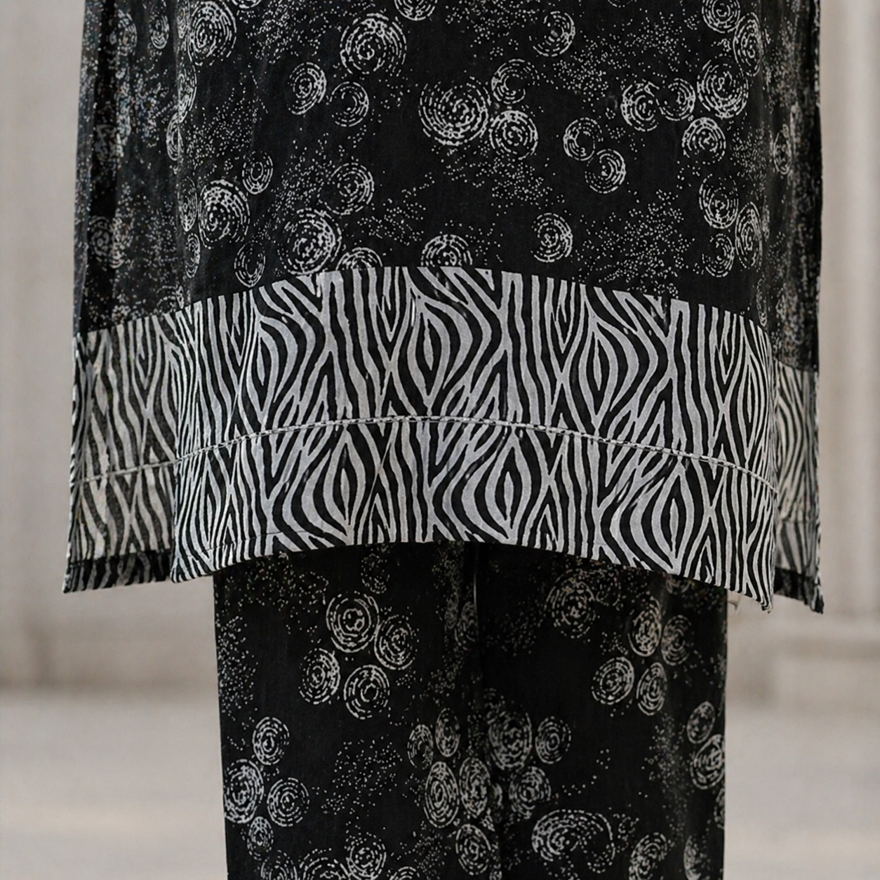 The monochrome theme of this outfit makes it incredibly easy to accessorize. You can add statement jewelry for a bold look or keep it minimal for a more understated style. The outfit acts as a perfect base, allowing you to experiment with different styling options depending on the occasion.