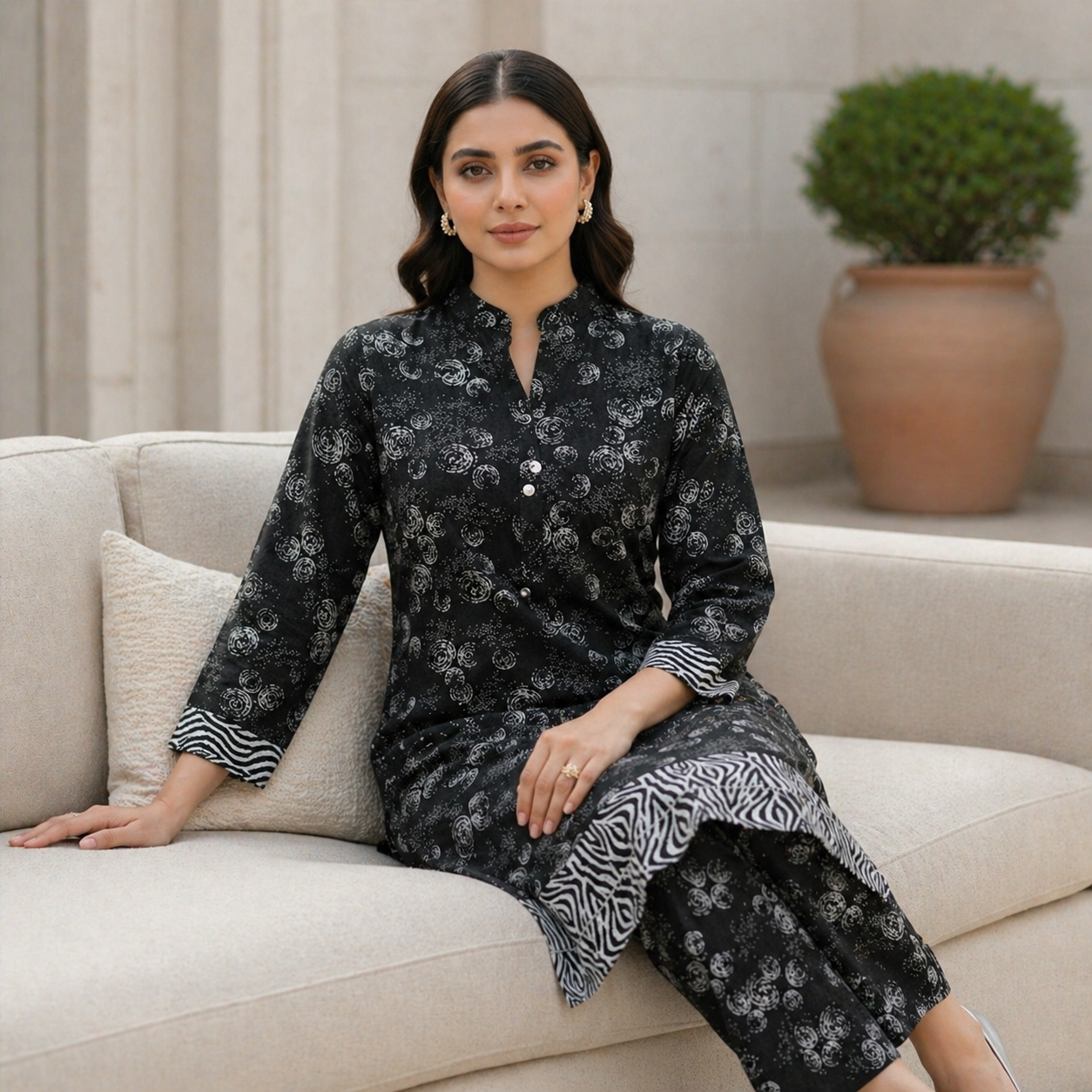 Upgrade your everyday wardrobe with Silks Studio’s Black Printed Lawn 2-Piece Suit, a perfect combination of comfort, elegance, and timeless design. Created for modern women who value both style and practicality, this outfit blends classic prints with a contemporary silhouette, making it ideal for daily wear, office looks, and casual gatherings.